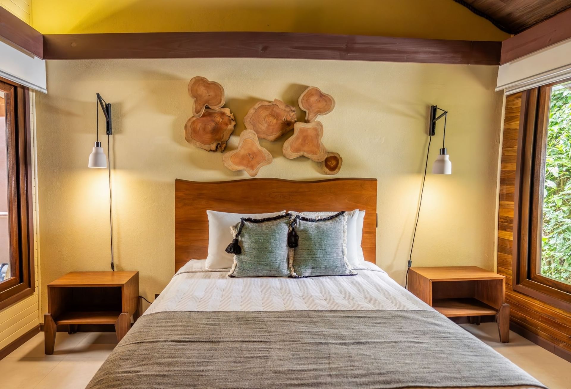 12 cozy, newly renovated cottage-style rooms located on a hillside next to the rainforest. All rooms are equipped with A/C, two double beds, a mini-fridge, and a cozy porch to enjoy the sunsets with spectacular views.